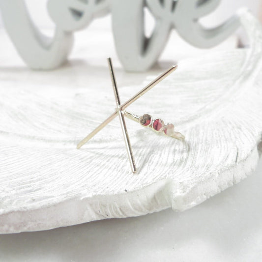 Raw Gemstone Ring - Three Dots, 1mm Band, Choose Your Metal