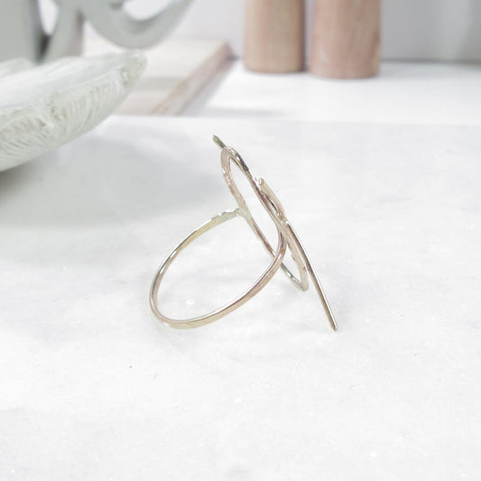 Raw Gemstone Ring - Oval Lariat, 1mm Band, Solid 14k Gold