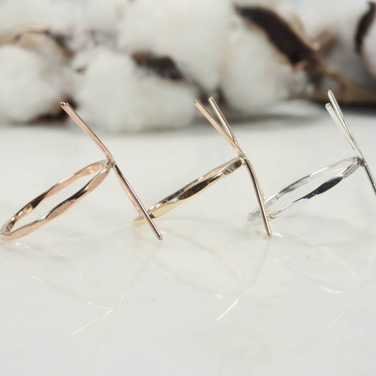 Raw Gemstone Ring - V Hammered, 1mm Band, Solid 14k Gold