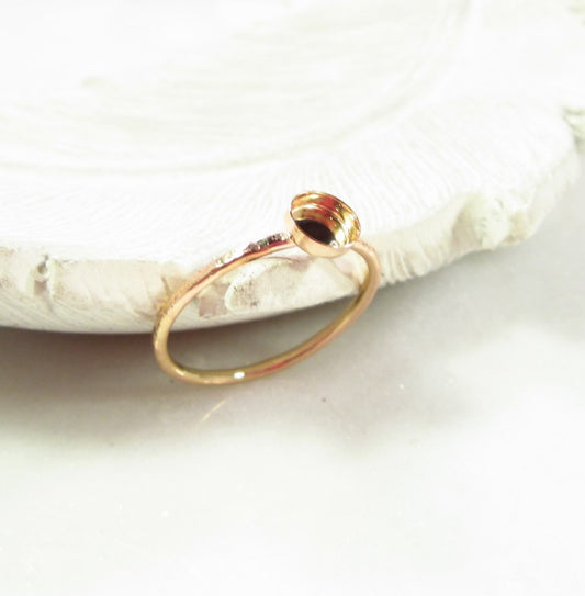 Bezel Cup Ring Setting - Tiny Heart, Round, 1mm Band, Choose Your Cup, Solid 14k Gold